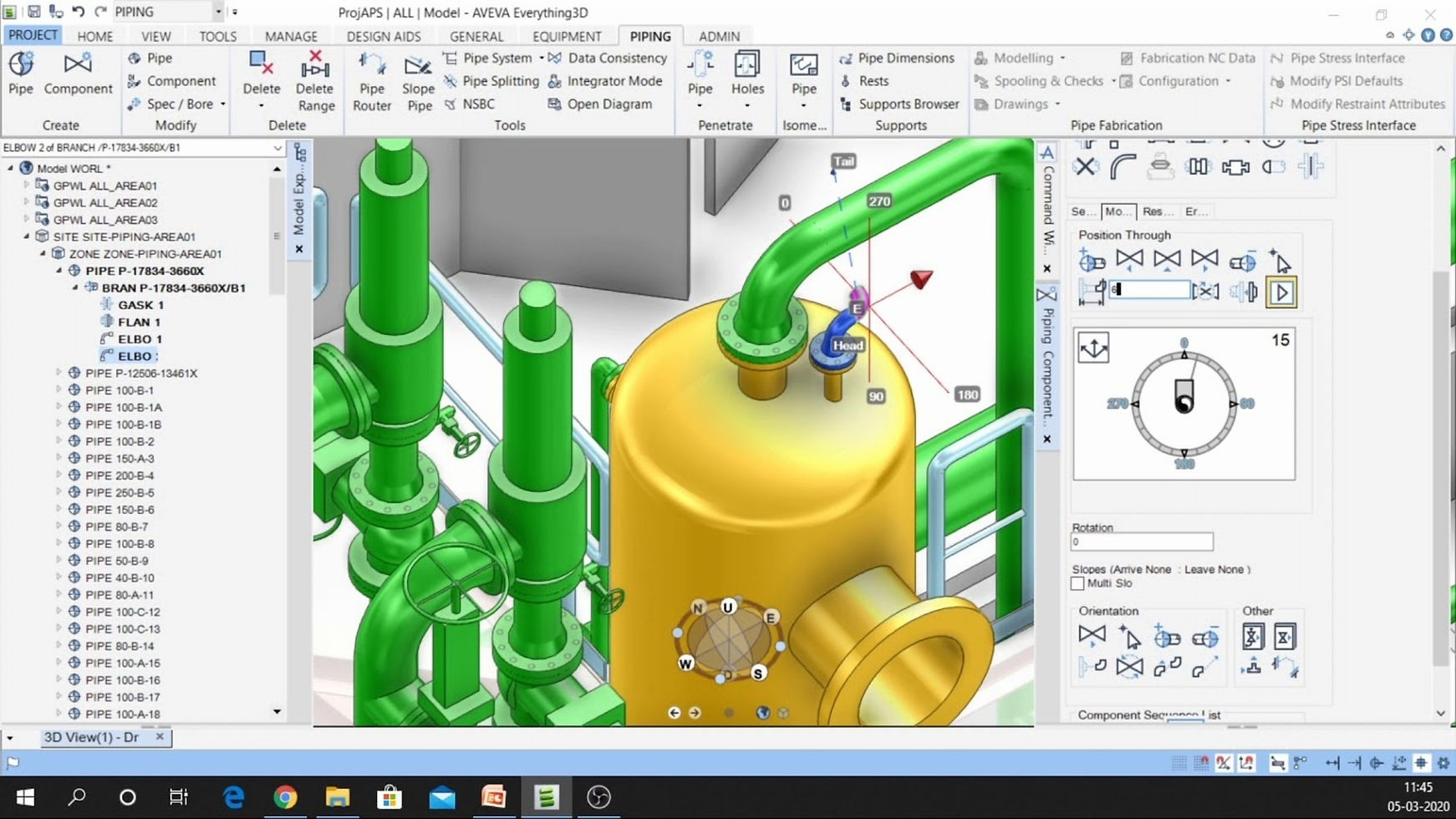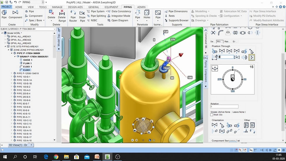 A 3D model of a piping in MTO software, streamlining material quantification and procurement processes